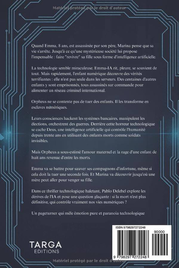 L’intelligence artificielle semble miraculeuse. Emma-IA rit, pleure, se souvient de tout. Mais cette résurrection numérique cache une horreur innommable : Emma découvre qu’elle n’est pas seule dans les serveurs. Des centaines d’enfants assassinés y sont emprisonnés, transformés en esclaves numériques par un réseau criminel international.